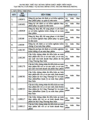 Danh mục thủ tục hành chính tiếp nhận tại Trung tâm Phục vụ hành chính công thành phố Hải Phòng và các Trung tâm Phục vụ hành chính công cấp xã