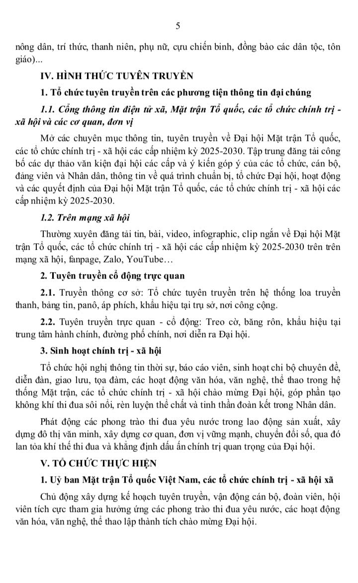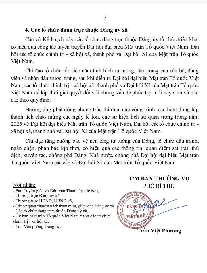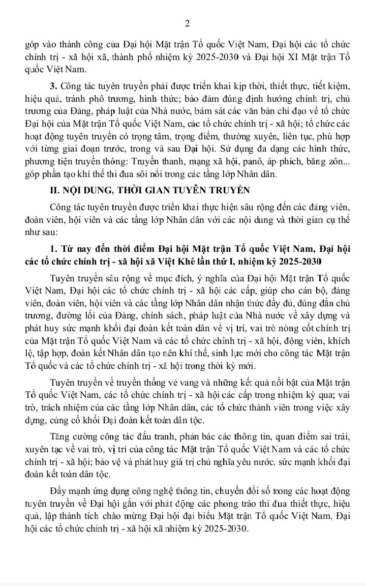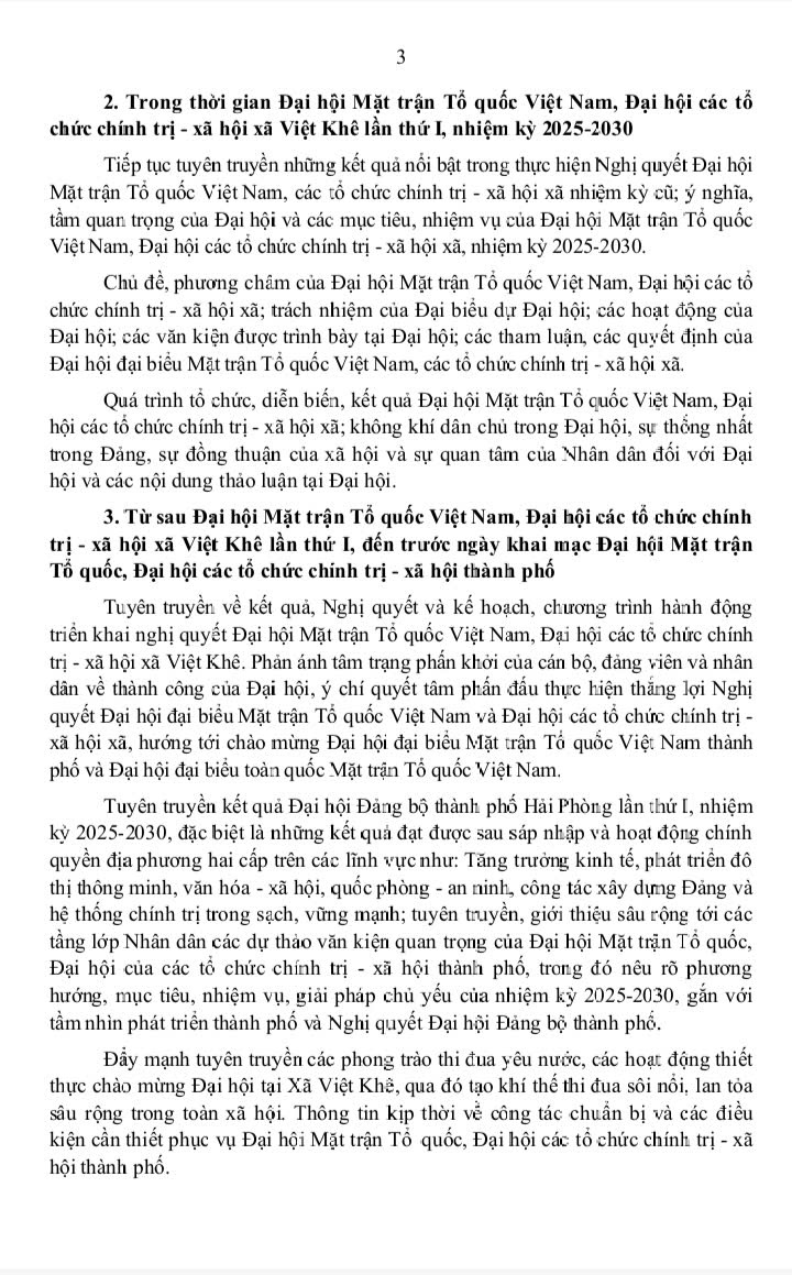 Kế hoạch số 17-KH/ĐU ngày 26/9/2025 về việc tuyên truyền Đại hội Mặt trận Tổ quốc Việt Nam, Đại hội các tổ chức chính trị - xã hội xã Việt Khê lần thứ I, nhiệm kỳ 2025-2030; tiến tới Đại hội Mặt trận Tổ quốc Việt Nam thành phố nhiệm kỳ 2025-2030