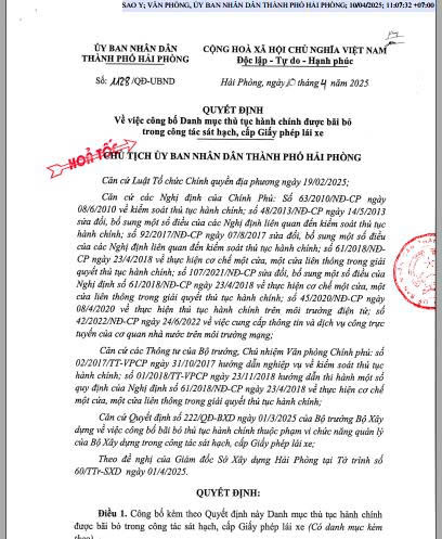Quyết định công bố danh mục thủ tục hành chính được bãi bỏ trong công tác sát hạch, cấp Giấy phép lái xe
