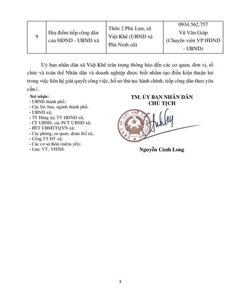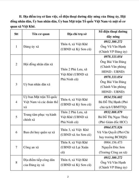 UBND xã thông báo về việc công khai địa chỉ Cổng thông tin điện tử; địa chỉ trang Facebook chính thức; địa điểm trụ sở làm việc, số điện thoại đường dây nóng của Đảng uỷ -HĐND-UBND-UBMTTQ Việt Nam xã và một số cơ quan xã Việt Khê
