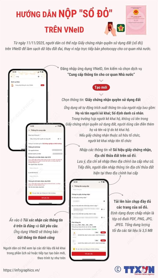 HƯỚNG DẪN CÁCH NỘP “SỔ ĐỎ” TRÊN ỨNG DỤNG VNeID ĐỂ “LÀM SẠCH” DỮ LIỆU ĐẤT ĐAI