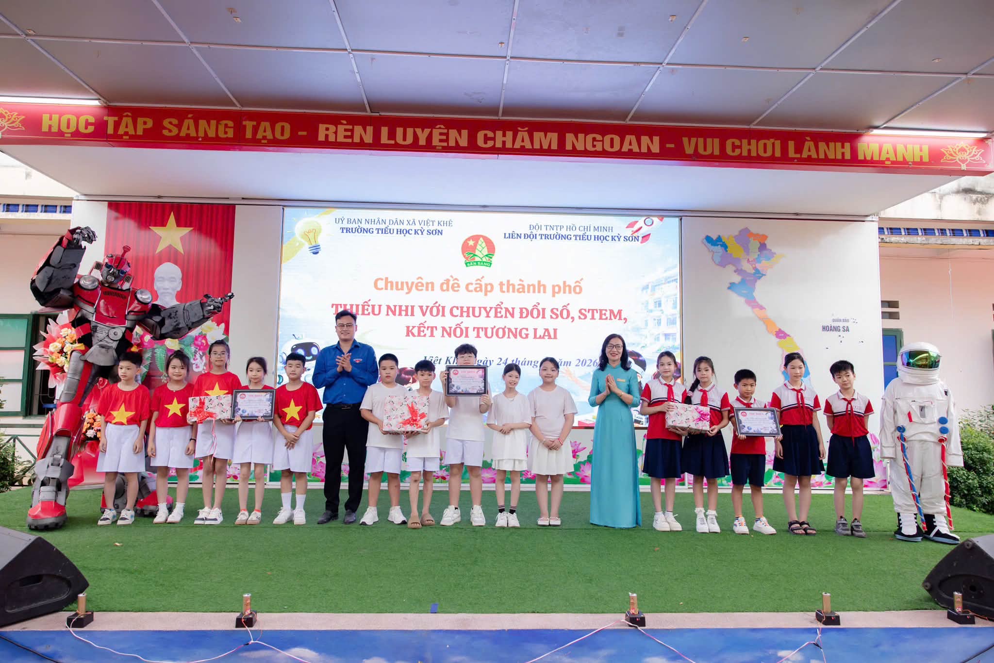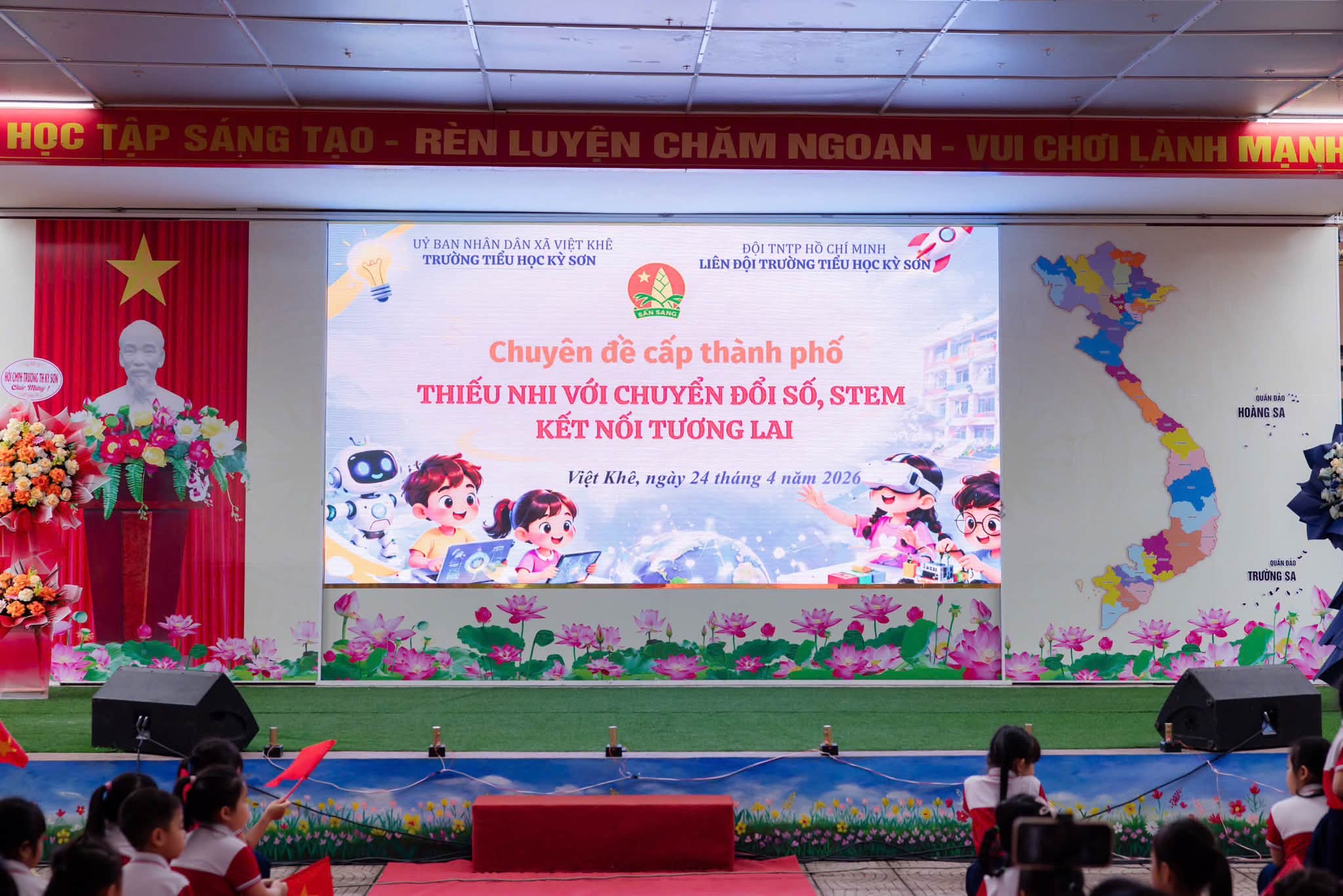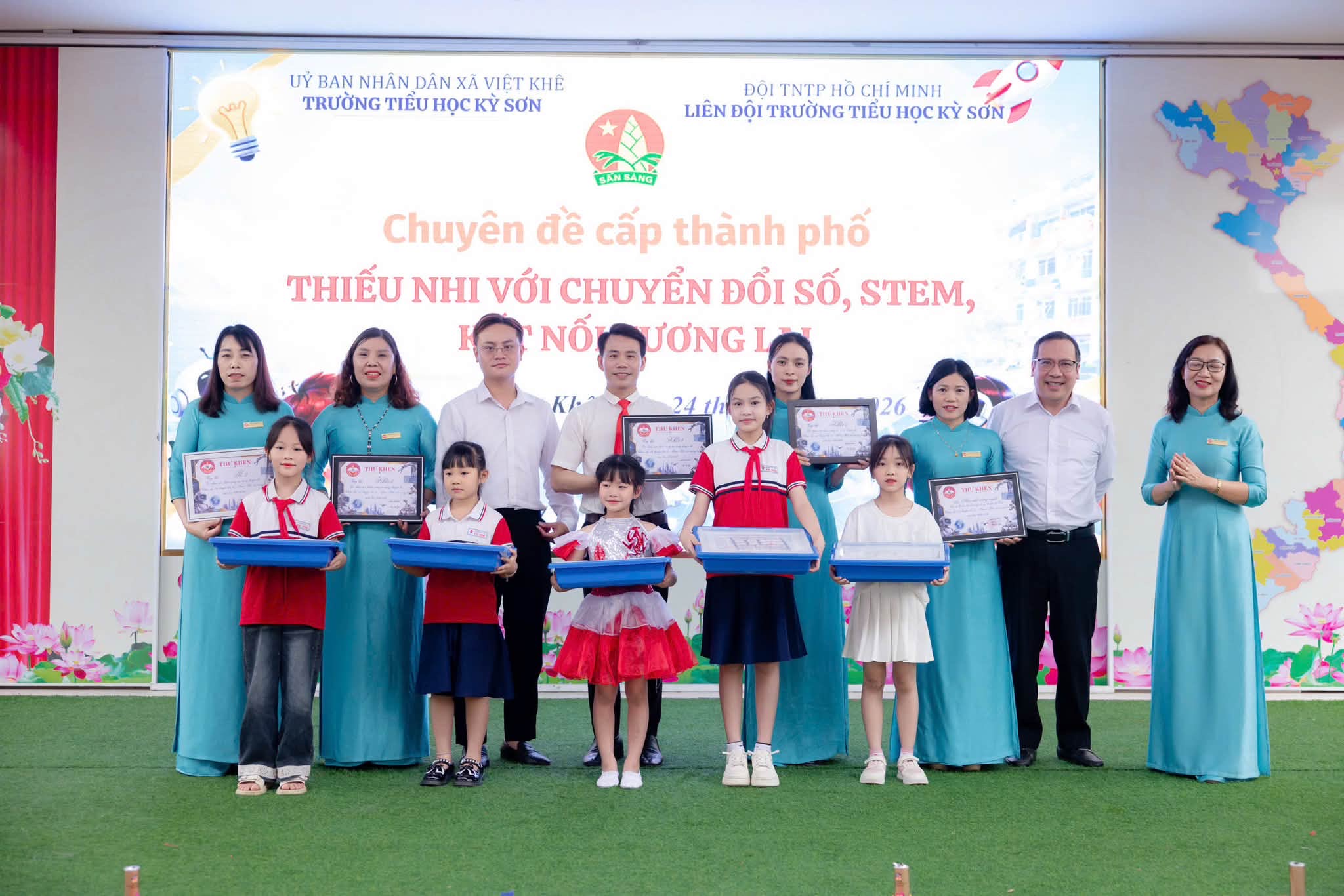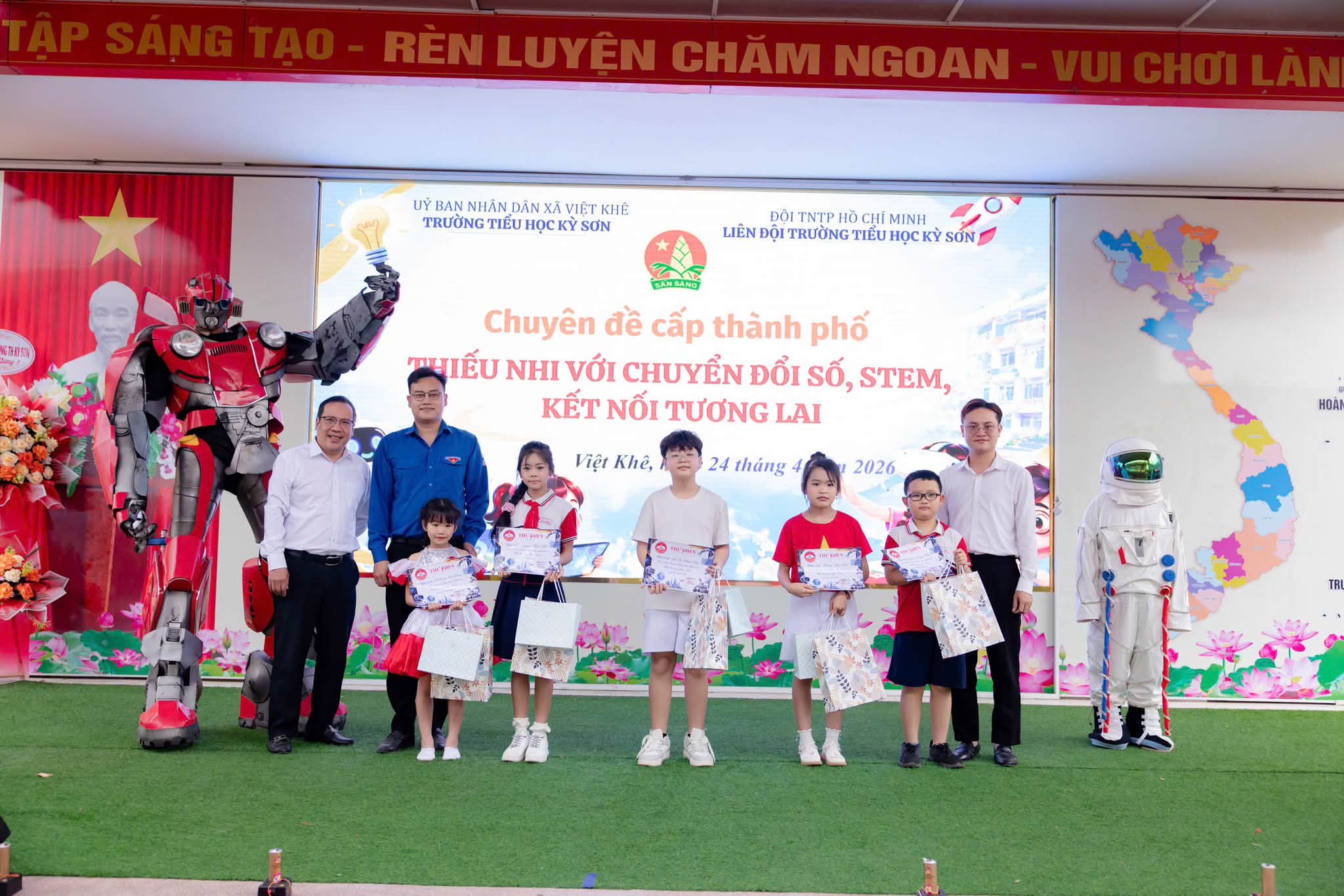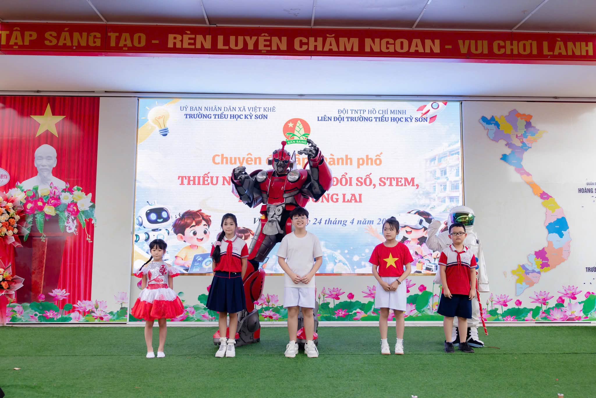 Sáng ngày 24/4/2026, Liên đội Trường Tiểu học Kỳ Sơn đã tổ chức thành công chuyên đề “Thiếu nhi với chuyển đổi số – STEM – Kết nối tương lai”