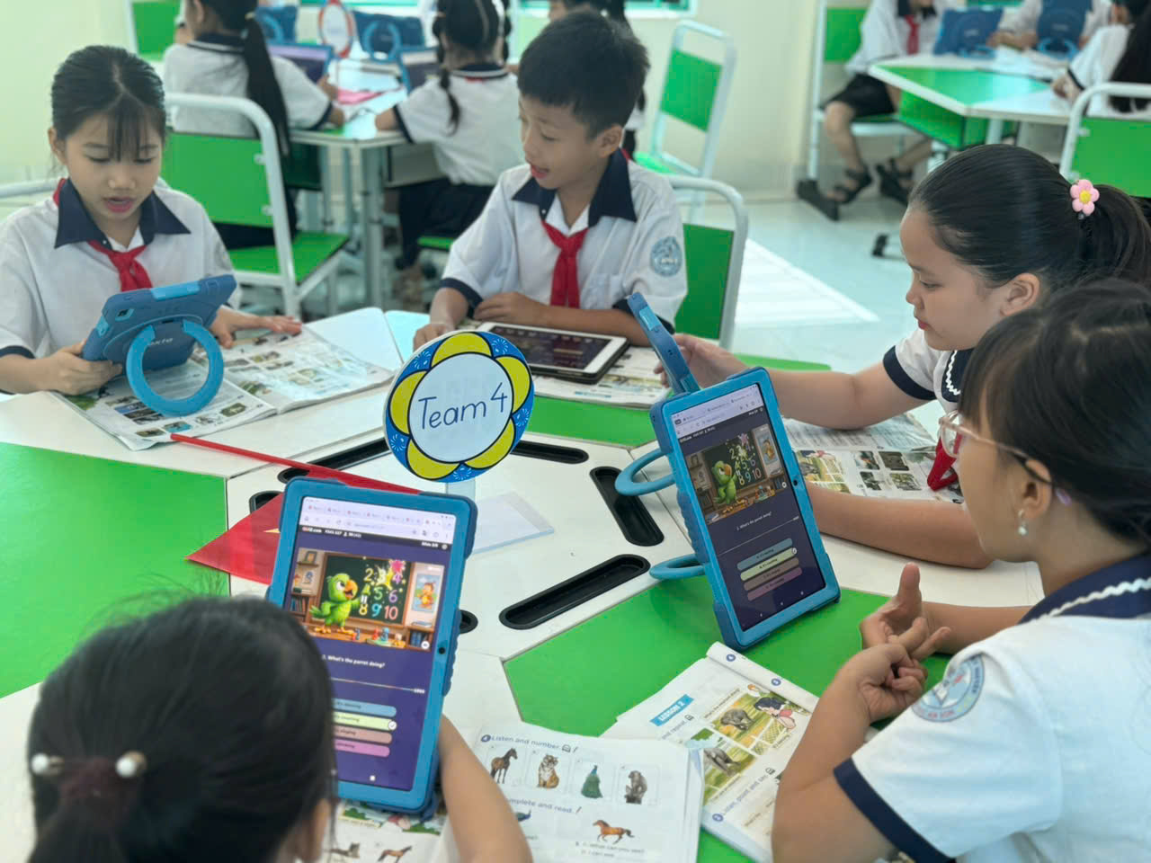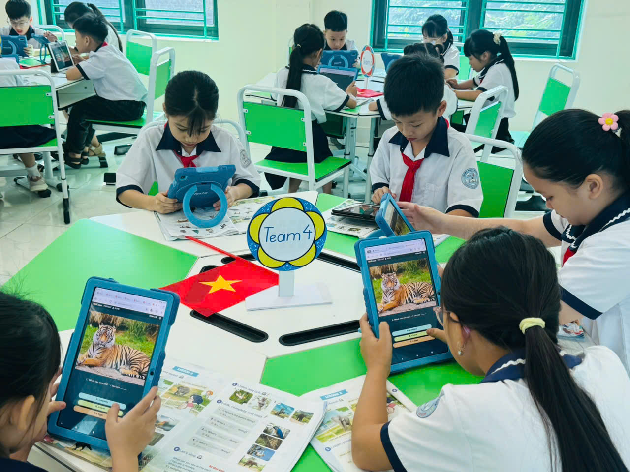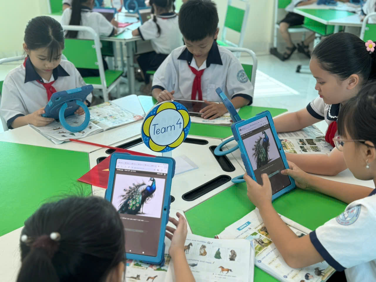 Không chỉ hỗ trợ nâng cao khả năng ngôn ngữ, việc ứng dụng công nghệ số còn góp phần rèn luyện cho học sinh kỹ năng tự học, tư duy sáng tạo, kỹ năng làm việc nhóm và tinh thần hợp tác. Các em được khuyến khích chủ động tìm kiếm thông tin, mạnh dạn bày tỏ quan điểm, xử lý tình huống và vận dụng kiến thức tiếng Anh vào thực tiễn giao tiếp hàng ngày.