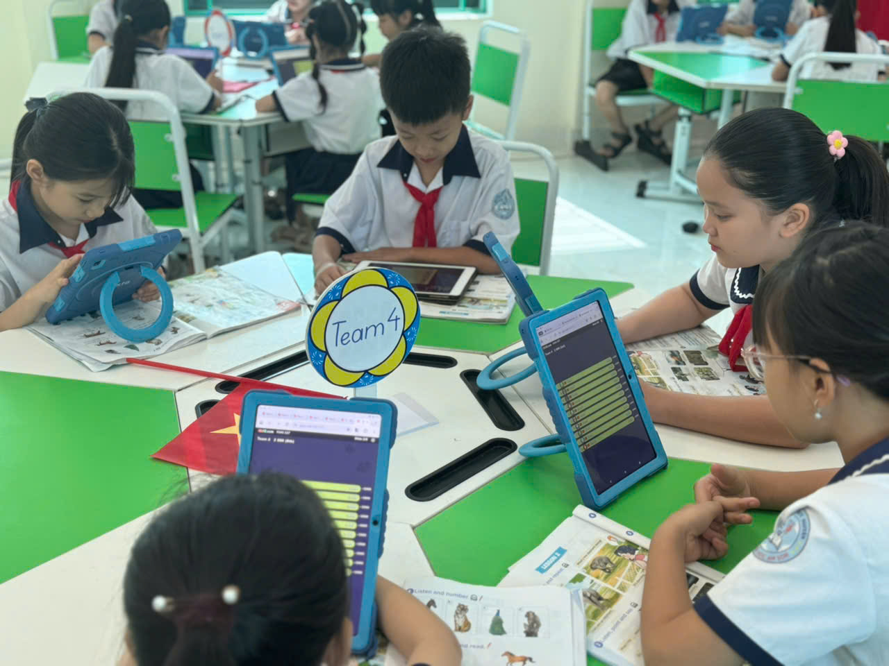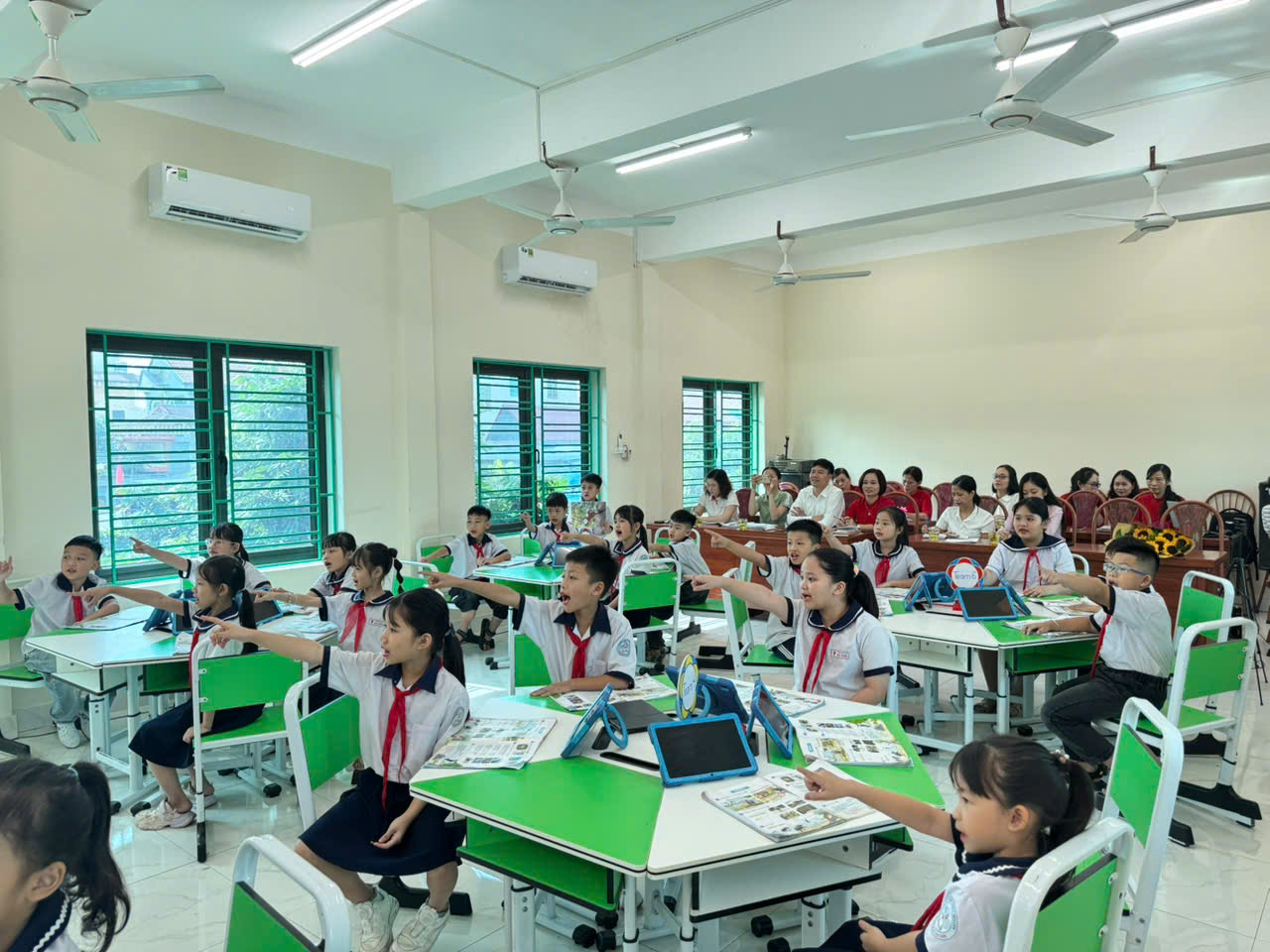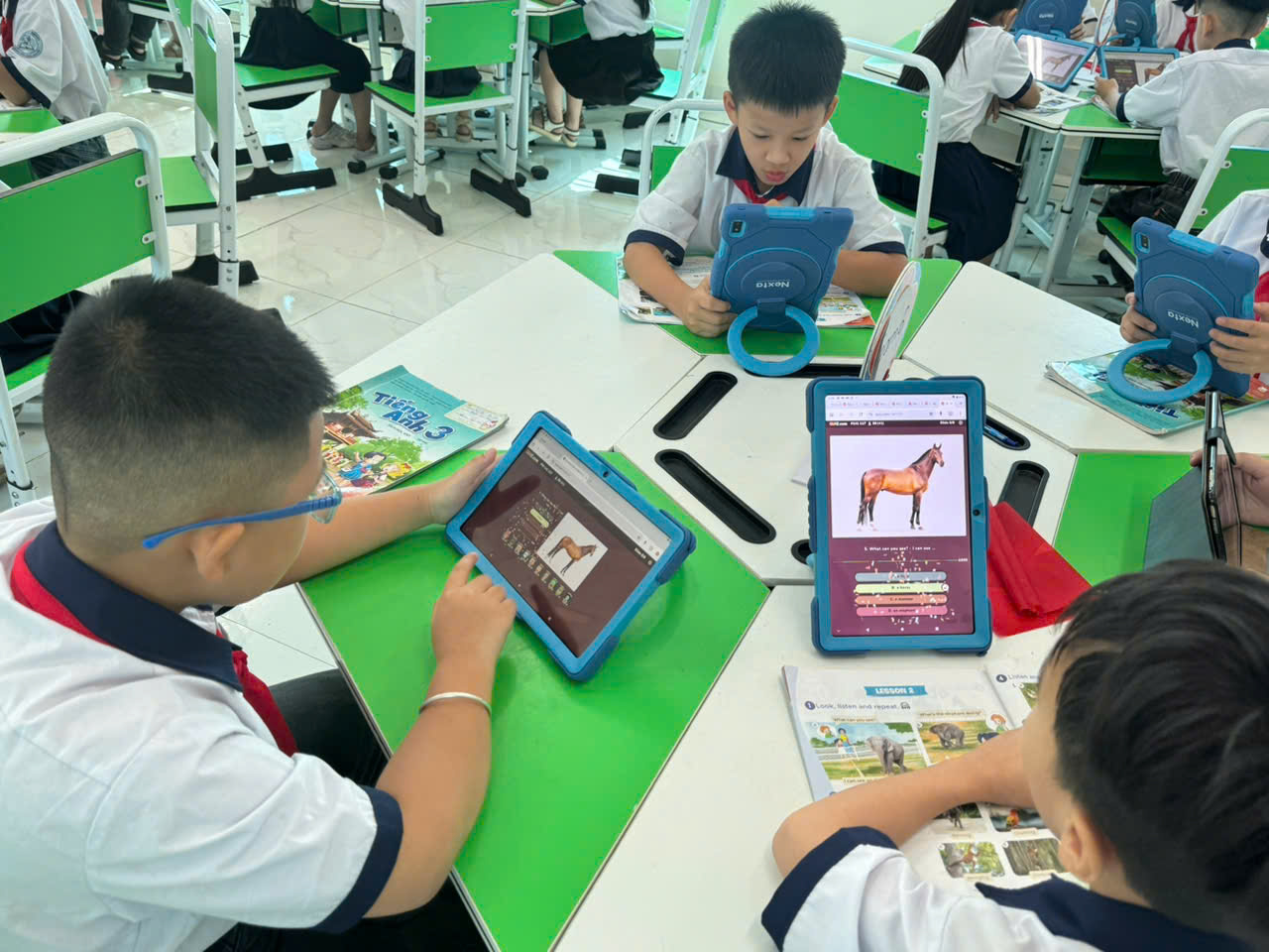 Không chỉ hỗ trợ nâng cao khả năng ngôn ngữ, việc ứng dụng công nghệ số còn góp phần rèn luyện cho học sinh kỹ năng tự học, tư duy sáng tạo, kỹ năng làm việc nhóm và tinh thần hợp tác. Các em được khuyến khích chủ động tìm kiếm thông tin, mạnh dạn bày tỏ quan điểm, xử lý tình huống và vận dụng kiến thức tiếng Anh vào thực tiễn giao tiếp hàng ngày.