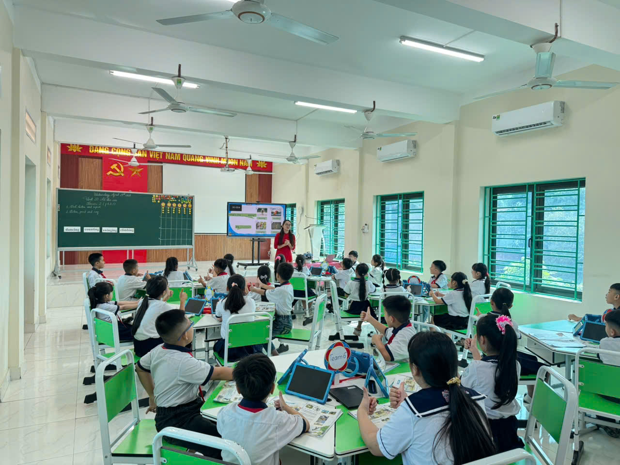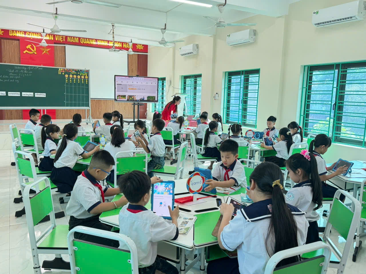 Điều dễ dàng nhận thấy trong chuyên đề là sự mạnh dạn, tự tin và hứng thú của học sinh trong suốt quá trình học tập. Các em tích cực tham gia trả lời câu hỏi, tương tác trên màn hình, luyện phát âm, luyện phản xạ giao tiếp bằng tiếng Anh và phối hợp cùng bạn bè hoàn thành các nhiệm vụ học tập. Không khí lớp học diễn ra vui tươi, sôi nổi nhưng vẫn đảm bảo hiệu quả tiếp thu kiến thức, tạo nên một giờ học “vừa học vừa chơi” đầy hứng khởi.