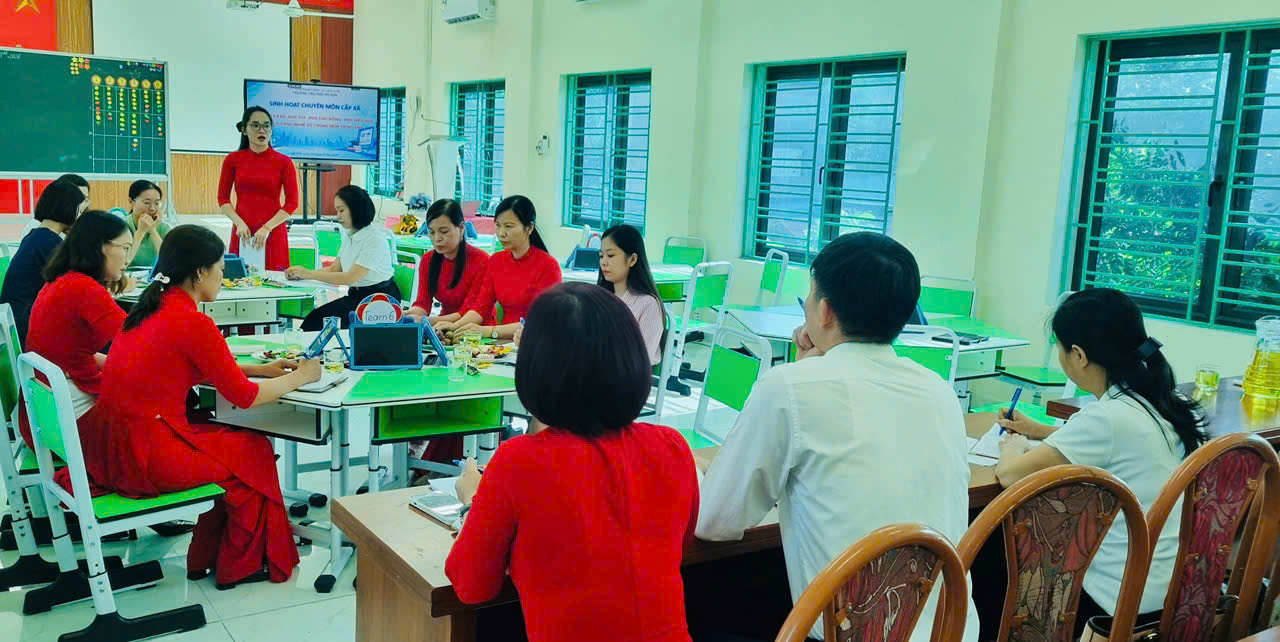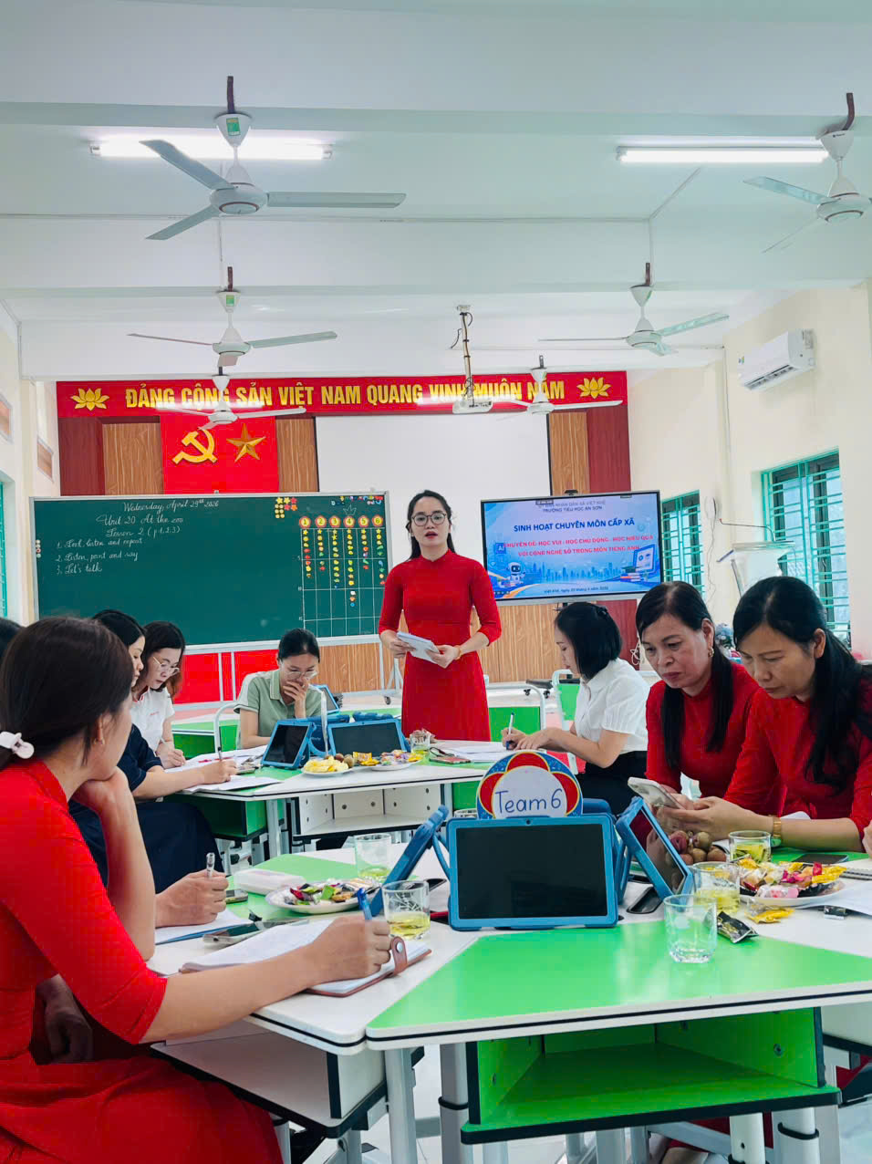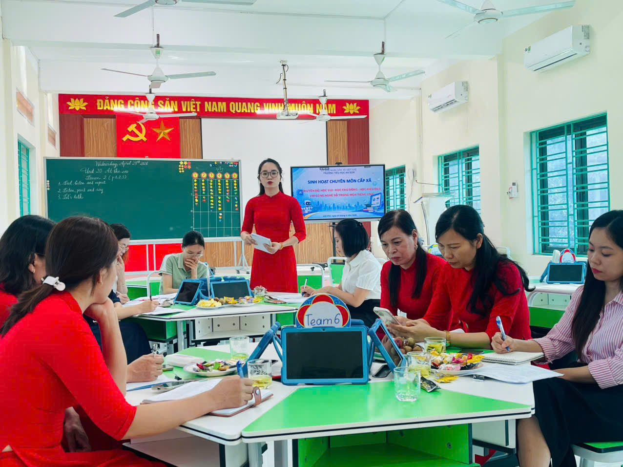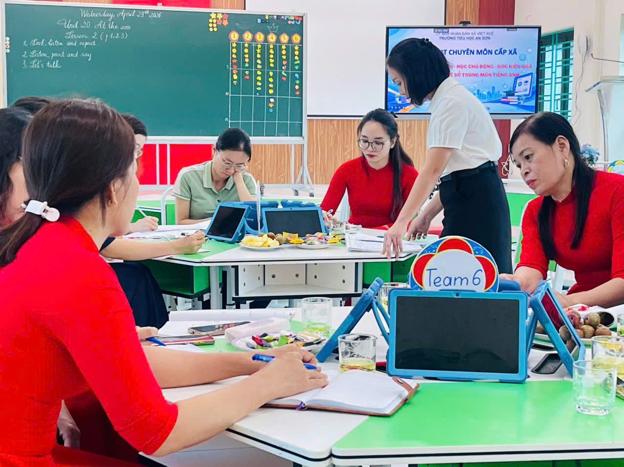 Chiều ngày 29/4/2026, tại Trường Tiểu học An Sơn, xã Việt Khê đã diễn ra buổi sinh hoạt chuyên môn cấp xã môn Tiếng Anh với chủ đề **“Học vui - Học chủ động - Học hiệu quả với công nghệ số trong môn Tiếng Anh”** trong không khí nghiêm túc, sôi nổi và tràn đầy tinh thần đổi mới sáng tạo.